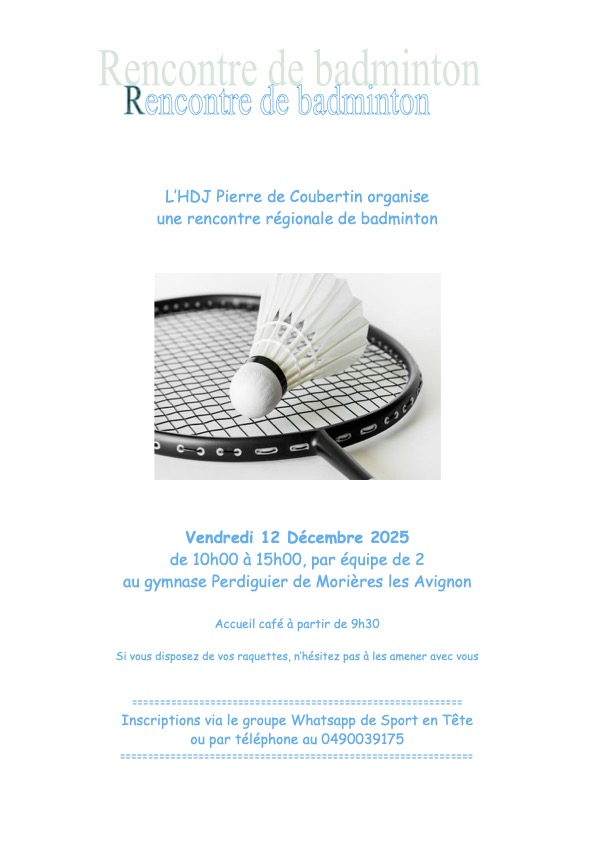 - 12/12/2025 : badminton à Morières-les-Avignon